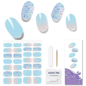 תווית פרטית 28pcs 28pcs הקיץ כחול 28 יח uv ג 'ל לעטוף לק רצועות nail מדבקות עבור ציפורניים הביתה diy