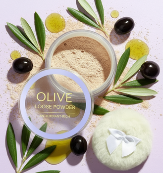 Özel etiket antioksidan zengin E vitamini nemlendirici pürüzsüz Finish yağ kontrolü saydam yüz ayarı toz zeytin gevşek toz