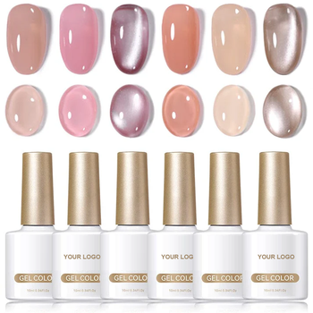 Özel etiket 6 renkler çıplak pembe jel cila kiti 10ml kapalı islatın UV LED parlak uzun aşınma Nail Art DIY jel lehçe
